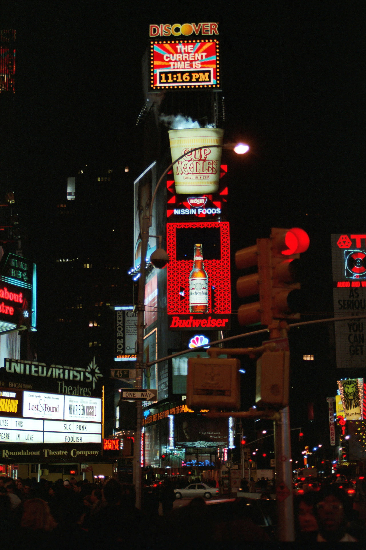 Der Times Square wurde 1904 nach dem 24-stöckigen Gebäude der New York Times benannt. 1928 veröffentlichte die Times Wahlergebnisse auf der weltweit ersten Laufschriftanzeige. Die Laufschrift aus 14.800 Lampen ist noch heute aktiv.