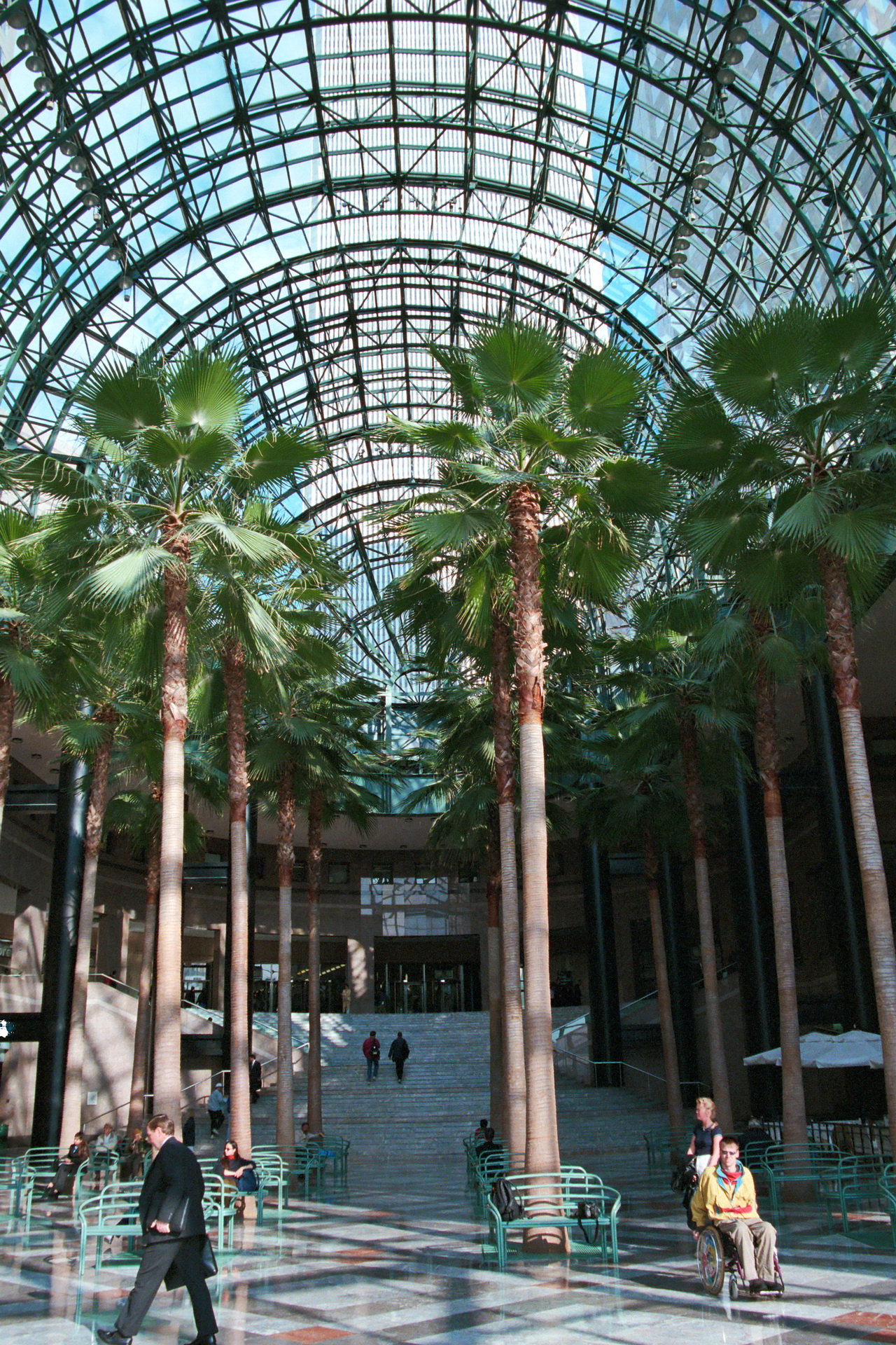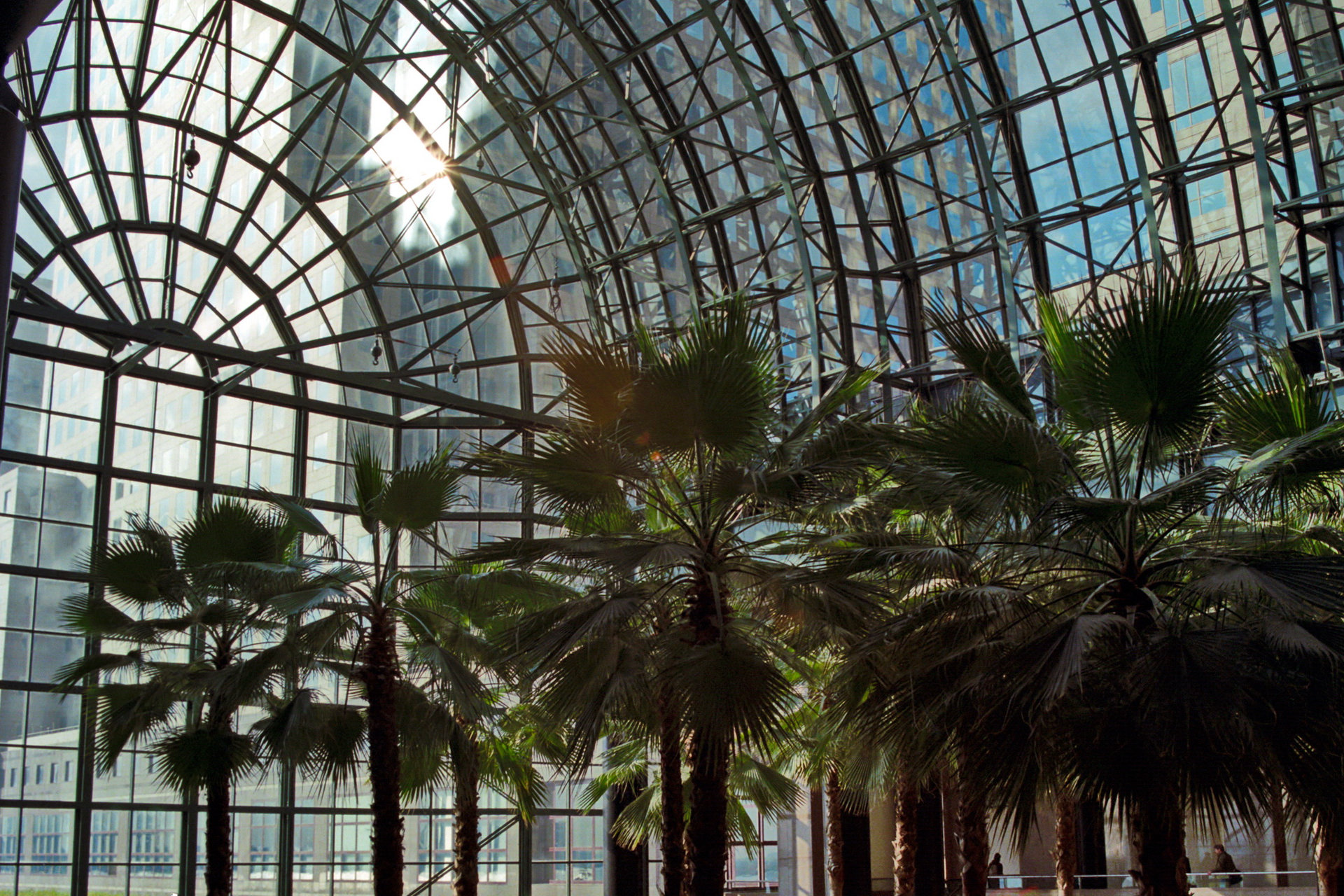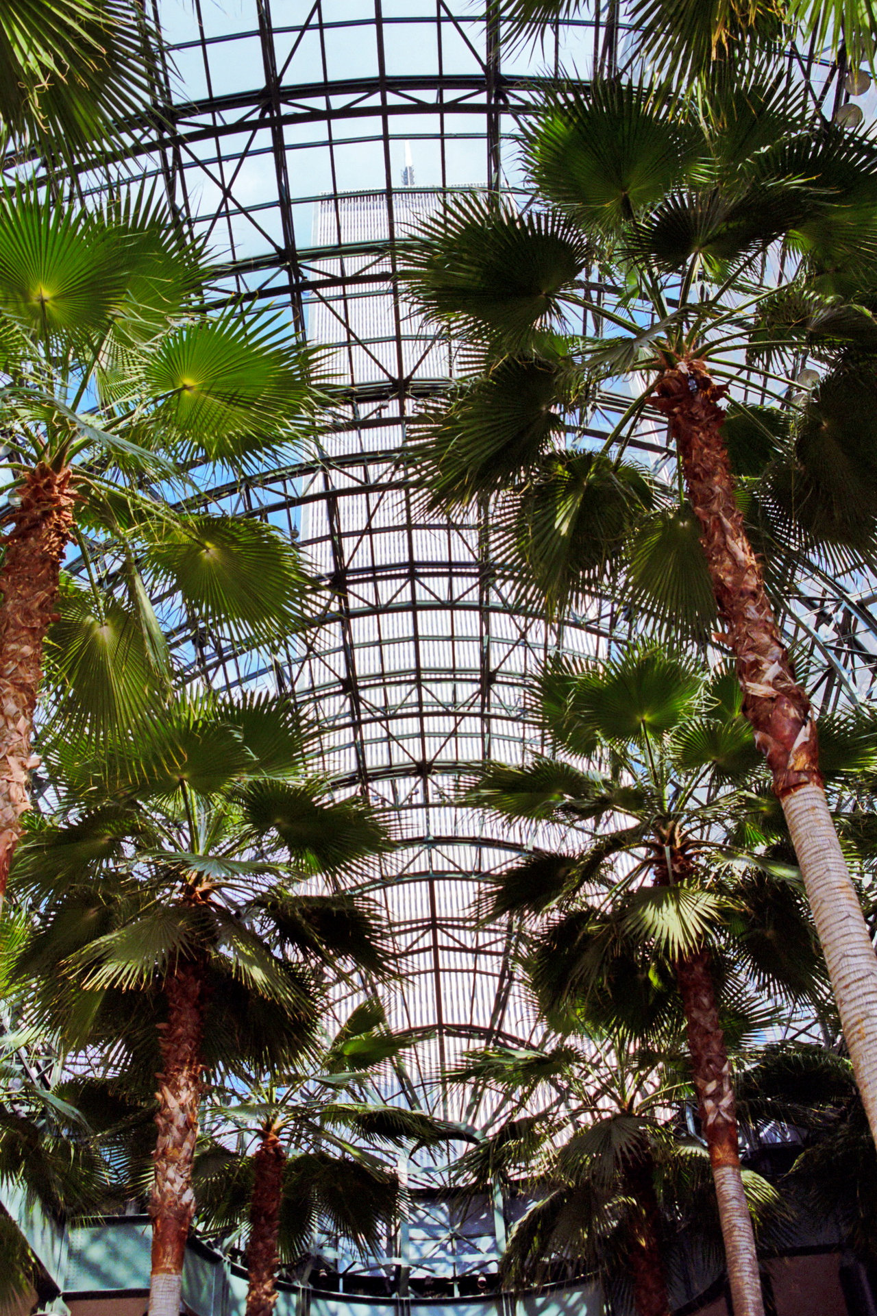 Das Glas-Stahl-Gewölbe ist 36 Meter hoch. Die 16 Palmen wurden aus der Mojave-Wüste an
